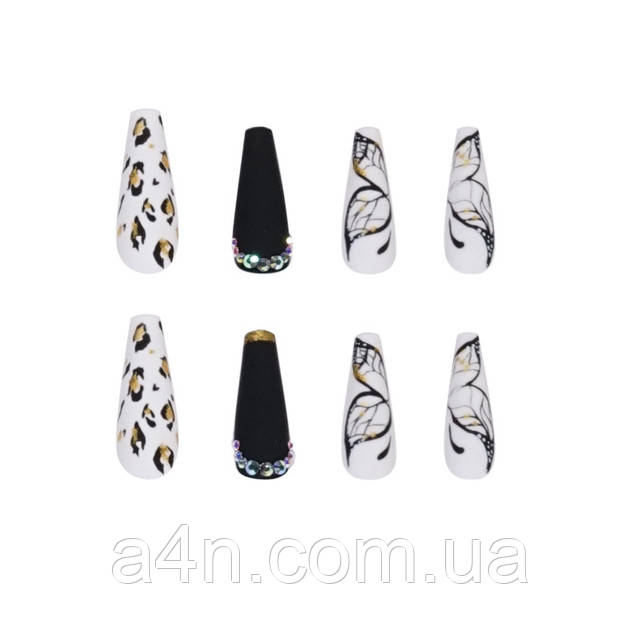 -5%Накладні нігті 24 шт. матові + клей для типс "леопардові метелики" зі стразами