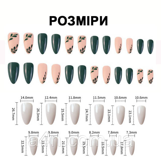 -5%Накладні нігті 24 шт. + 24 клейових стиків для типс + пилка - стилет
