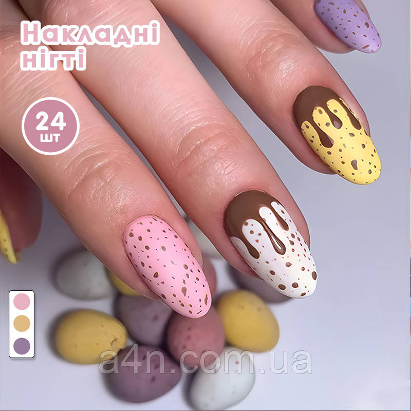 -15%Накладні нігті 24 шт.+ клейові стики для нігтів, типси овал для манікюру