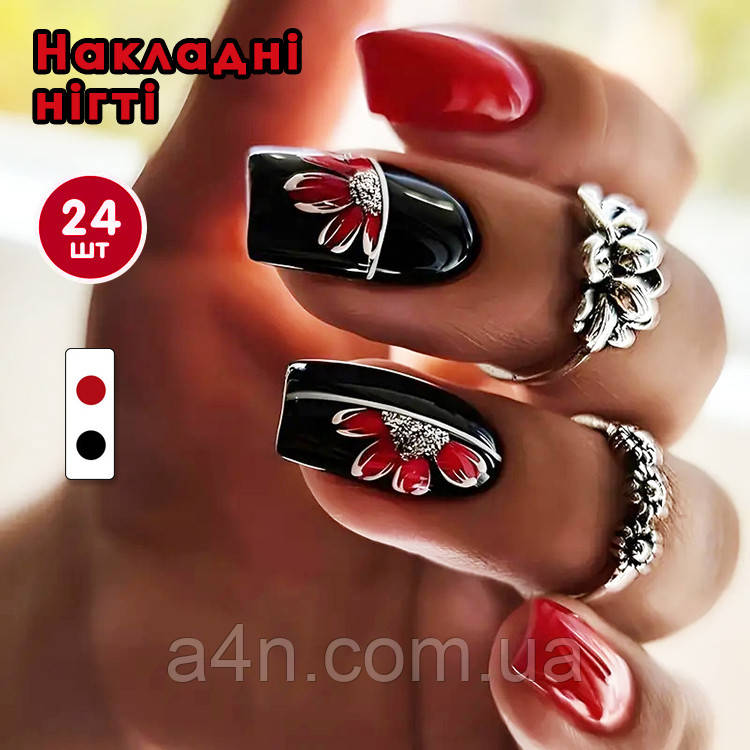 -11%Накладні нігті 24 шт. + 24 клейових стиків для нігтів і пилка, форма типс - квадрат
