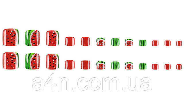 Накладні нігті 24 шт. літо (кавун) + клейові стики, типси для пальців ніг