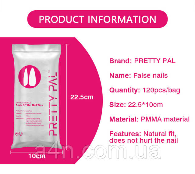 Гелеві типси 120 шт. - балерина, soak-off рідкі типси (накладні нігті) PRETTY PAL